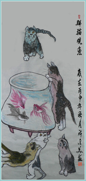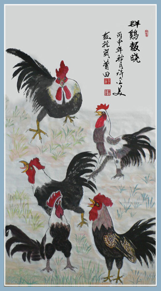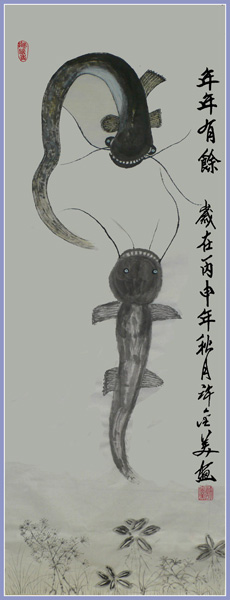 国画-鹰击长空-鱼翔浅底-138x69cm