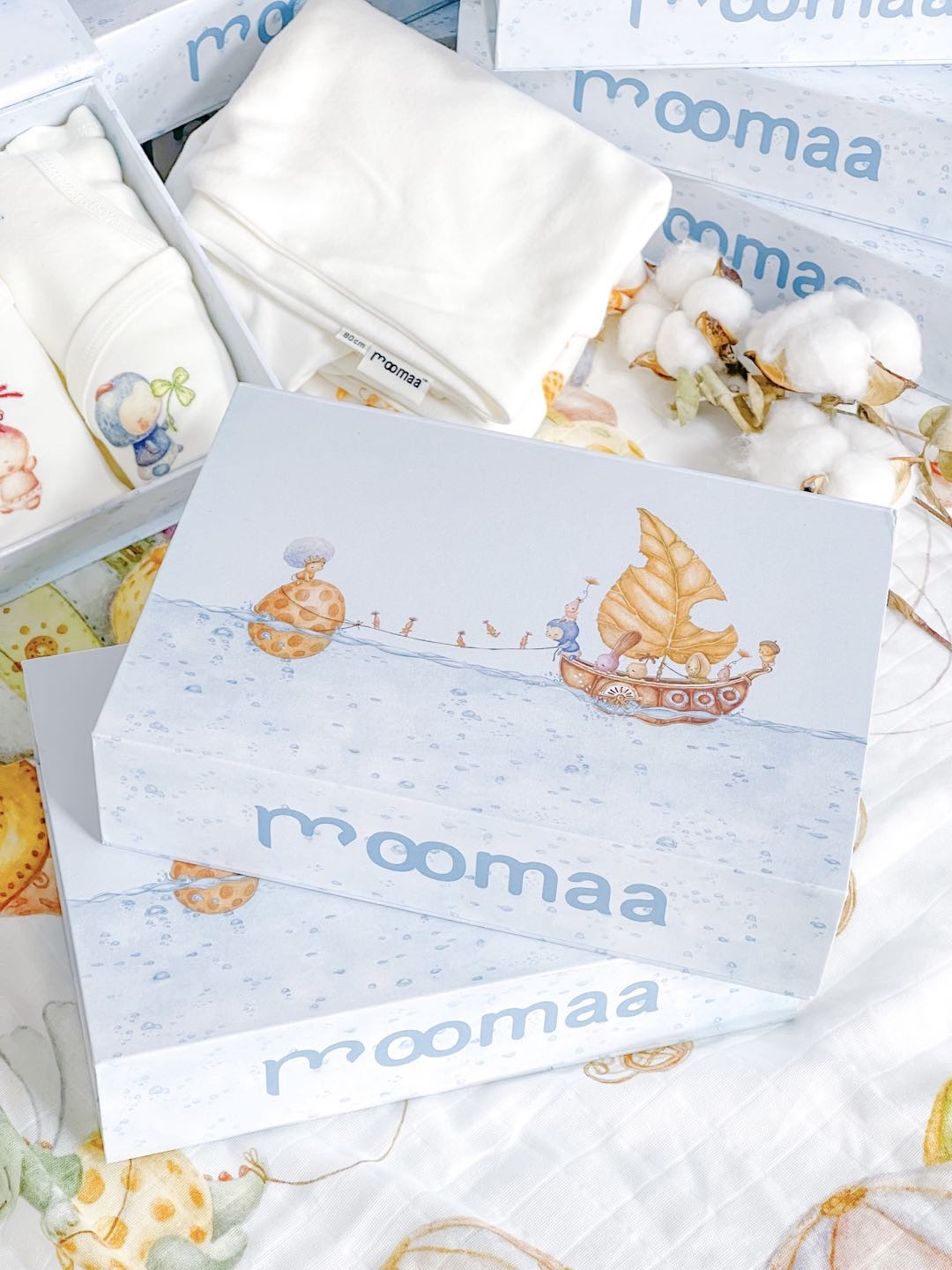 品牌随精神价值所呈现出的产品便是物理价值的体现。Moomaa的原创设计在不同产品的应用上也有着不同的意味。刺绣款包屁衣小型的花形更能衬托出小月龄宝宝最为纯净的样子,衣服只是衬托,宝宝才是故事的主角。大方巾根据其多样的使用场景,随时随地将宝宝置身于童话世界。连小小的口水巾,都充满了匠心意味,双面图案围绕在宝宝胸口,每一次擦拭,都是童话拂面。