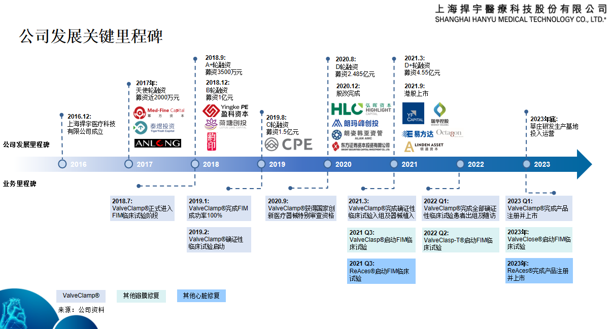捍宇医疗针对二尖瓣反流的介入器械ValveClamp,已于今年3月完成确证性临床试验所有临床病人入组,有望成为首款国产经导管二尖瓣介入治疗(TMV)器械;