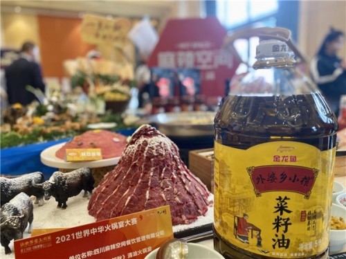 金龙鱼菜籽油餐饮渠道事业部徐经理表示,好的传统菜籽油可以激发出辣椒、花椒、葱姜蒜等调味料的脂溶性香味物质,做出来的火锅底料椒香浓郁,鲜爽麻辣,再加上我们金龙鱼外婆乡小榨菜籽油质地浓稠,让底料香味与食物融合得更好,特别适合做火锅底料,这也是金龙鱼外婆乡小榨菜籽油成为本次川菜大会火锅底料专用菜籽油的重要原因。