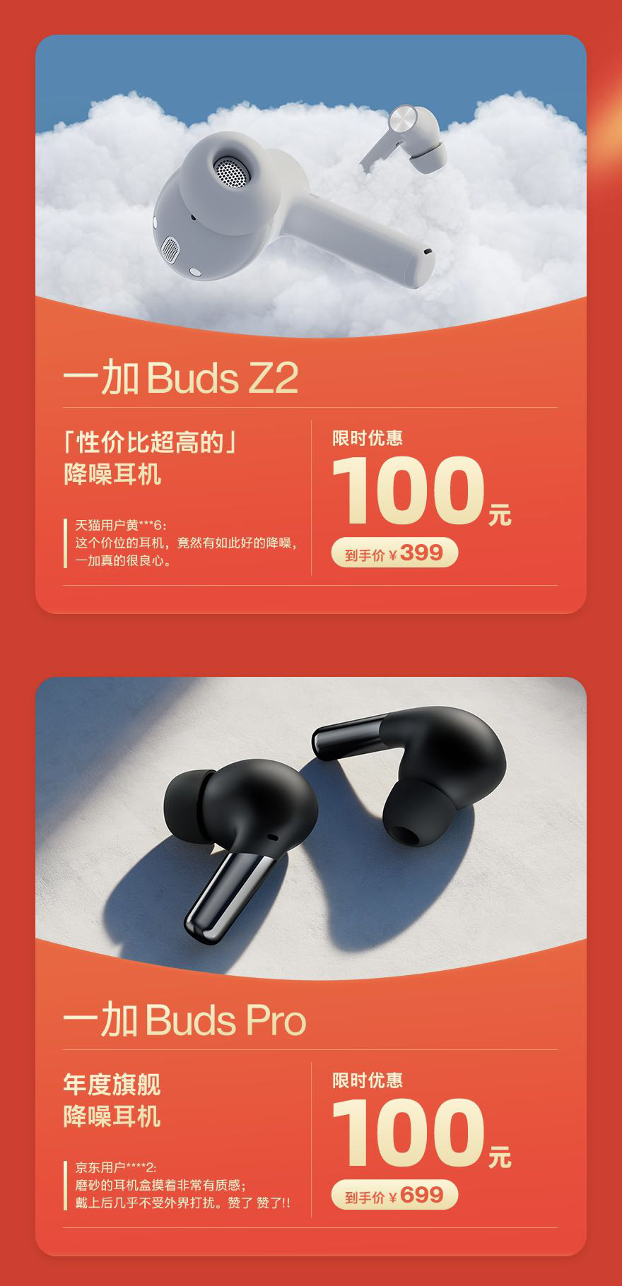 除了手机产品之外,一加还积极发力IoT产品线。此次最新发布的一加 Buds Z2主动降噪深度可达 40dB,并支持 3 麦克风 AI 通话降噪,同时在超强续航实力基础之下,一加 Buds Z2能为用户带来至多 38 小时优质的沉浸式聆听体验,并支持有线快充,免除用户电量焦虑。一加 Buds Z2还支持蓝牙 5.2 连接、94ms 低延迟、IP55 防尘防水、开盖闪连、佩戴检测等,提供全面且贴心的综合体验。本次双十一限时优惠100 元,399元即可到手。