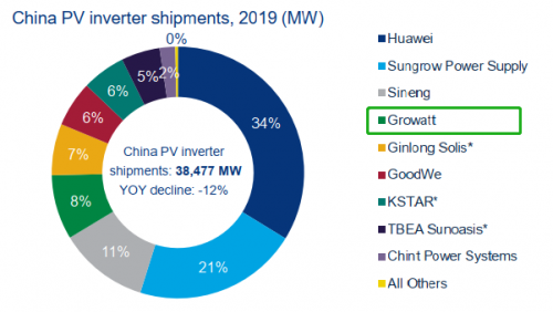 在亚太地区,古瑞瓦特是第四大供应商,仅次于华为、阳光、上能;在中国市场,古瑞瓦特同样排名第四位,表现优异。当前古瑞瓦特主要份额来源于分布式及户用市场,在中国户用市场已经连续四年排名第一位;2020年下半年,古瑞瓦特即将推出适用地面电站项目的1500V系列产品,相信未来会进一步提升市场份额。