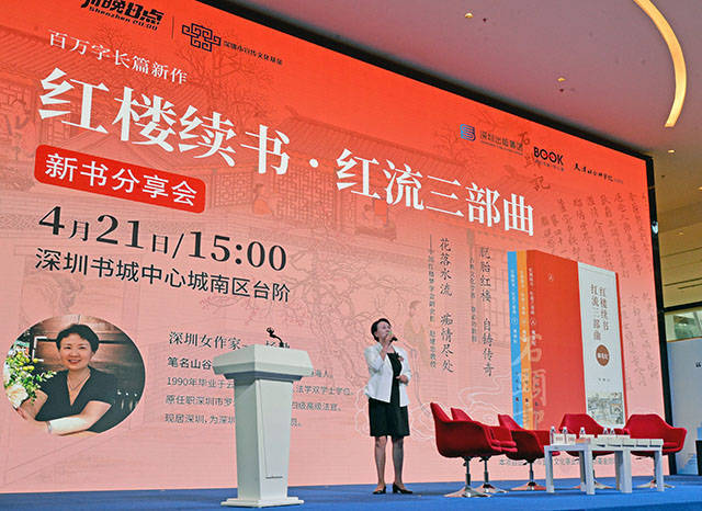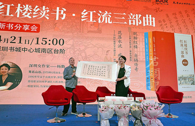 书香深圳,满城皆可触手经典,悦享旋律温润心田。作为科技之城,其中华传统文化同样依然根植于这座改革开放四十年的青春之都。值此第29届4•23世界读书日到来之际,深圳市作家杨勤历时三年完成,并于2024年4月21日携新书《红楼续书•红流三部曲》的《榴花纪》《桃叶渡》和《凌波行》,在深圳市中心书城南区大台阶分享由深圳出版集团、深圳书城中心城和天津社会科学院出版社联合举办的活动。