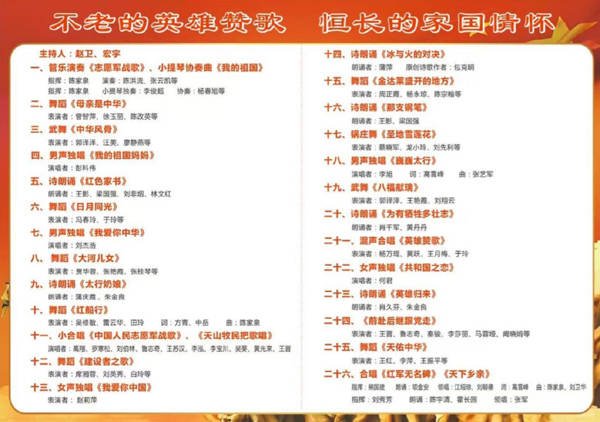 演出伊始,全体参会人员肃立齐唱《中华人民共和国国歌》,集体向牺牲的志愿军烈士默哀,缅怀先烈们的丰功伟绩。