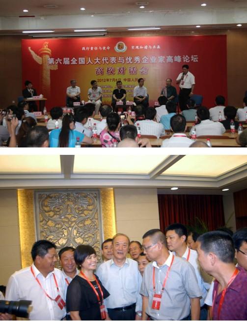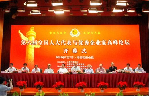 2012年7月7日上午, 第六届全国人大代表与优秀企业家高峰论坛,以“责任与使命,和谐与共赢”为主题,在北京中国科技会堂隆重举行。全国政协副主席厉无畏等领导出席了峰会开幕式并致辞。每年一届的高峰论坛,联合全国各级人大常委会与人大代表、多家新闻机构和权威专家学者,深入探讨中国企业家在落实科学发展观、构建和谐社会和经济体制改革中所应履行的责任与使命。