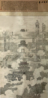增喜精致的线描具有典雅的建筑之美。线描作品用笔精工、采景博瞻、物象和谐、藻饰华丽。《古都风韵》、《古都洗礼》描写东京汴梁宫闚(kui)市井之物事,以体物胜迹为主流,用笔纤畅、取材宏大、格调绮丽,把对家乡的爱意与七朝古都汴京的画意相结合,具有浓烈的情思氛围。在市井之中洞见慧识代表地域特色之物象,更接近豪华落尽见真淳的艺术真谛,画者的精神也随之升华,自然美、建筑美与心境美融为一体。空明纯美的画境体现了他的线描艺术作品已进入了成熟阶段。
