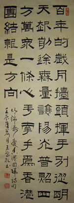 格言是:宁静致远,淡泊名利,博釆众长,不断向书法艺术的高峰攀登。