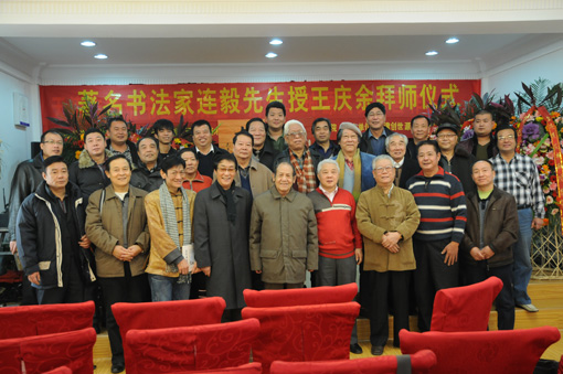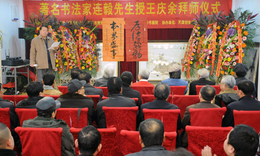 28日,著名书法家连毅先生授王庆余拜师仪式在天津市侨商会馆隆重举行,天津天后宫、天津民俗博物馆馆长、中国妈祖文化促进会副会长、著名画家蔡长奎先生主持拜师仪式,书画界名家及社会知名人士30余人参加仪式。