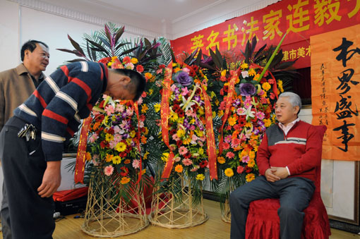 他介绍说,徒弟王庆余已经在自己的书法领域取得了一定成绩,是一位爱学上进的好学者,很有发展前途。连毅先生希望弟子在书法艺术深造学习中,不但继承前人,还要不断创新,并最终形成自己的艺术风格,为中国的传统书法艺术的继承和发展做出自己应有的贡献。他说:书法艺术记载着中华民族五千年的文明,学习中国书法,不仅可以使我们在中华文明博大精深中陶冶情操、培养品质,更能在学习和训练传统书画技巧的过程中,修身养性、塑造人格。
