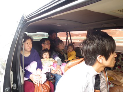 图为非法营运的车辆在接受交警部门检查和车内所载乘客。