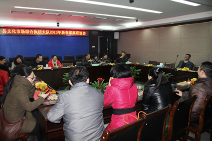 2月5日上午,双峰县文化市场综合执法大队全体干部职工和家属欢聚一堂,在县新闻发布厅举行了热烈而简短的迎春联谊会。