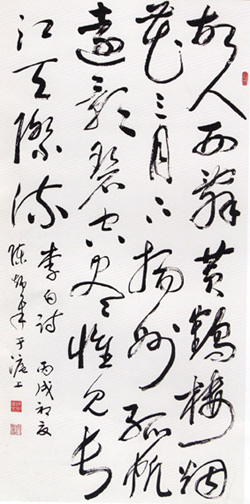 他是一位书坛大家,在诗书领域以其特有风格和成就展现了艺术人生的绚烂,作品经常在国内外展览和专业杂志、报刊发表,并获多种奖励和荣誉。他的诸多墨宝被有关机构和企业家朋友收藏,是一位颇具影响的书法家。