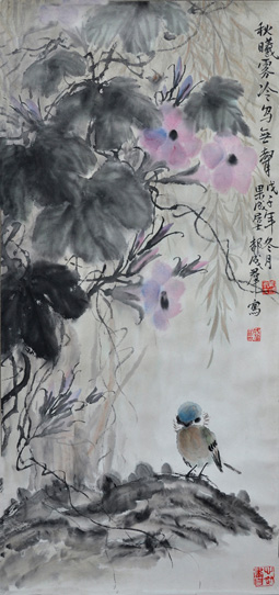 笔墨是意境的导体,是负载着生命的绘画形式语言,是有声音的,是心灵深处的感知与聆听,是心心相映,是高山流水似的知音,无需用文字语言来形容解释。再好的文字语言也不如笔墨形式语言带来的感受直截了当。“一即一切,一切即一”。愿我心灵的笔墨能与众缘感通,愿同伦斧正。成群合十。