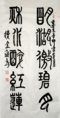 续金海、男、汉族、1956年12月生于甘肃省会宁,籍贯:山西淳县人。毕业于西南政法大学公安专业,历任甘肃省白龙江林业管理局所属两水公安派出所所长、公安局副局长、社会治安综合治理办公室主任、公安局局长、经济民警支队政委,一级警督。现为全国书画行业著名专家、国际名家书画院副院长、教授、中华文化研究院副院长、中国书画家协会理事、中国书画研究院副院长、北京宝延轩书画院院士、高级书画师、中国书法家协会理事、阿拉伯大使馆特聘书画师、中国名家书法协会副主席、中国当代书画家代表作典藏主编、中国名家名作典藏主编、中国国际书画研究院国际交易联盟理事。历年参加《金鼎奖全国书法美术展赛》、《第二届“盛世中华”全国书法美术大赛》和《首届“国誉杯”世界华人美术书法展赛》等,荣获一等奖、金奖13次、荣获银奖8次;及“美讯杯中国艺术与财富杰出年度人物银奖”。特授予“全国首批优秀人才模范勋章、中国爱国艺术名家、中华传世金奖、中国杰出书画艺术家、中国书画艺术家百佳、爱党爱国功勋书画艺术家、中华爱国艺术名家、国艺书画名家、与党旗同辉·功勋书画艺术家、中国最具收藏潜力艺术家、中华文化名人、共和国红色传承书画名家、中国红色文化艺术家、中华金奖艺术名家及香港国际拍卖有限公司授予2008最具市场升值潜力人物和特级书法家”等称号。