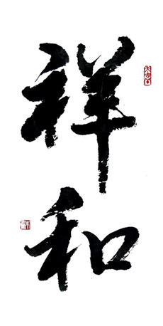 《祥和》行书立轴 规格:70cm×35cm 作于2008年11月