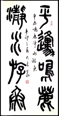 四十余年的书艺之路,先生始终把美统一于人的精神、人的品格之中,其作品多角度地析视出其馨香的品行和高洁的志向。他不走捷径,不图虚名,不急于求成,不盲目追风,而是一步一个脚印,踏踏实实地走自己的路。他认为,学书不仅仅是求知,更重要的是通过书法来治心、修身、养性,以此来进道德、修人格,正如黄庭坚《书缯卷后》所云:“学书须胸中有道义,又广之以圣哲之学,书乃可贵”。