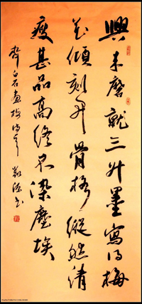 兴來磨就三升墨,写得梅花倾刻开。骨骼纵然清瘦甚,品高终不染尘埃。