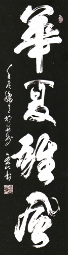 阎文崑先生出生在华夏文明的发祥地之一山西省,从小就受到家庭环境的影响,和哥哥阎文升一起学习中国书法,尤其是在他父亲阎武宏先生的熏陶及言传身教下,书法传统功力受到了严格的基础训练,更重要的是他从父辈那里了解到中国优秀的文化思想和艺术精神,对今后兄弟俩的书法艺术创作打下了深厚的基础!这种了解和体验渗透在他的艺术创作中化为一往无前的激情,使他的作品心仪老庄,又旁涉禅学。但在我看来,他的书法精神,主要还是如他的作品一样,壮怀激烈、潇洒从容。
