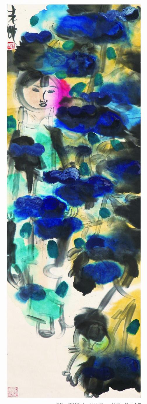 众所周知,陈老铁是当代著名的革新派绘画名家,他的抽象水墨把中国意向绘画与西方表现主义风格相结合,形成了具有视觉张力和冲击力的绘画风格。这些因素在仕女人物画中,我们也能看到他抽象水墨元素巧妙的运用。专家指出,比如,他在仕女画中的线条具有很强的个人特色。他的风格样式不同于传统的十八描,而是陈氏风格的线性样式,线的节奏起伏顿挫也完全和传统的钉头鼠尾描、兰叶描、铁线描不同。陈老铁的线条是多层次的,有虚线和实线的复合性组合线条,同样也有粗线与细线的不同展现。这种多样性的线不仅给画面带来了生机和活力,也带来了丰富性和多样性。陈老铁手中的线和传统的线条具有很大的不同,这种线充满了空间,具有空气感和通透性,实线与虚线交相呼应,使得单调而平板的传统线描从画面中活跃了起来。
