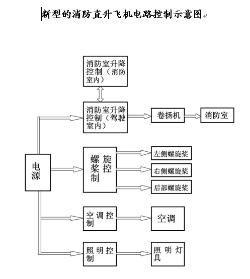 后附:①新型的“消防直升飞机”示意图;②新的消防直升飞机电路控制示意图。