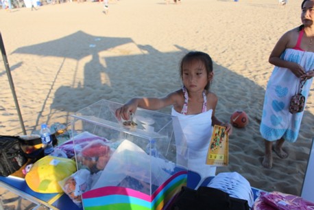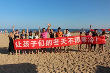 游泳回来的小朋友们纷纷来为山区小朋友们献爱心。