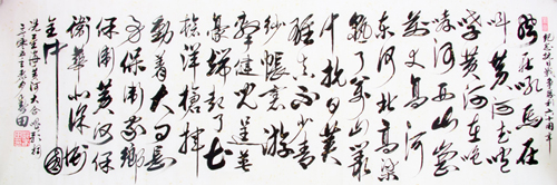 形意草书正奔“马”首列选刻在涞水县野三坡2008米长的庆祝奥运纪念碑林上。其作品在全国各省市巡回展出。后创回头“马”在2008年7月14日 至18日在军博馆展出,二 “马”分别获得金奖和特等奖。2008年3月15日至16日全国政协特邀参加了十一届一次会议闭幕式。2012年1月8日中央电视台和香港新闻评报对本人进行了专题采访.