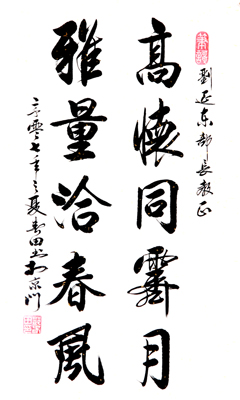 以书会友,书法作品被温家宝总理、黄孟复等党和国家领导人收藏。另有多件作品被胡德平、刘建章、魏建国、黄信生、卞洪登、邹世华、曹满贵、乔世忠、葛凯勇、胡厚昆、高天民、刘建军、坦桑尼亚大使、赞比亚大使、尼日利亚大使、中国联合国协会理事、中央电视台顾问安永玉、周宏伟、 等名人名家收藏。多件作品转展台北、香港、印尼、加拿大、美国等地。作品刻在纽约华人
