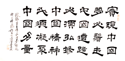 2013年2月,习主席语录等作品被国家文化部艺术人才中心,大型宣传特辑《文化强国》中国书画大家与经典藏录编。并被国家图书馆、档案馆、博物馆收藏。