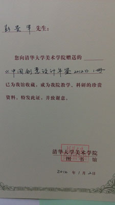 清华大学美术学院图书馆收藏《年鉴》并颁发《收藏证书》