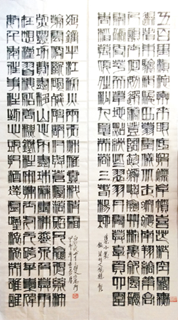 先生作品,在“申奥成功全国篆刻大赛”中荣获金奖,首届华人书画大展中荣获银奖,在第三,四届世界华人香港大型艺术展中,荣获特别金奖和国际特别奖,即兴作品深受海内外各界名流贤达、官员商家喜爱,慕名求取,高价收藏。先生为世界第一碑林书写小篆碑文数百块,为我国第一书画长卷、奥运纪念2008米收藏卷治印数枚,为多处名人故居、风景胜地留墨刻印。颇多书画篆刻作品参加义卖或载入名家典籍。