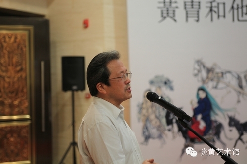 中国收藏家协会顾问、中国战略学会名誉会长、解放军原副总参谋长熊光楷上将,中共中央文史馆副馆长、中国文联副主席、中国美协副主席冯远先生,炎黄艺术馆原副理事长、中国壁画学会名誉会长、黄胄好友侯一民先生,以及中国保利国际拍卖有限公司执行董事赵旭先生分别致辞,与在场嘉宾们分享了他们对黄胄及其艺术成就的认识。熊光楷上将从文化收藏的角度回顾了与黄胄及其家人的交往经历,对黄胄的心系社会的广阔胸襟表达尊崇之情;冯远先生高度评价了黄胄的艺术成就,他说,毛泽东主席曾评价黄胄是中国人民自己培养出来的艺术家,即使在今天,黄胄在美术史上的地位也几乎无人可企及,炎黄艺术馆和黄胄美术基金会推出的这个大展具有非常积极的意义;侯一民先生则回顾了黄胄先生的最后一件作品——炎黄艺术馆的创建过程中遭遇的阻扰以及如何化解,风趣的语言激起大家对这一代人激情燃烧的岁月里心怀社会公益理想的崇敬。