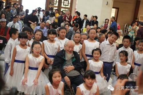 开幕式在北京黄胄艺术实验小学的同学们带来的“炎黄艺术馆之歌”中拉开帷幕。这首歌由陕西省歌舞剧院副院长黎琦先生作词,著名音乐家、中国音乐家协会主席、西安音乐学院院长赵季平先生作曲。悠扬的歌声仿佛将大家带到了黄胄先生所经历的72年波澜壮阔的艺术人生中。