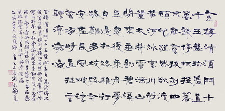 细品书法家张尚国的作品,给人以豁然开朗之感,运笔老道、刻苦严谨、笔锋犀利、涉猎广泛,于多种不同笔法都有很高的造诣。他的作品极具个人风格与时代气息,是国内不可多得的优秀书法作品。