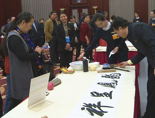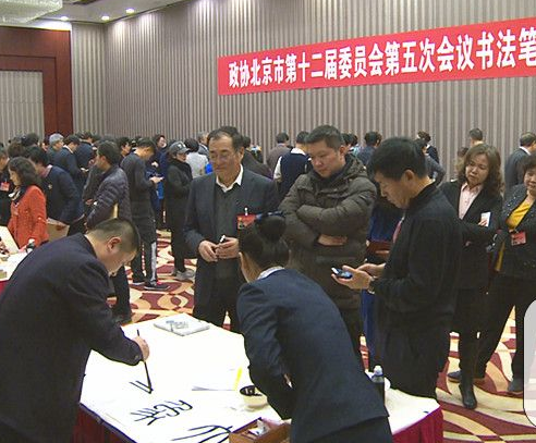 2017年1月15日晚北京政协十二届第五次会议举办书法笔会。来自北京书法家协会的协会理事田博平、唐龙、杨春燕等10位书法名家现场挥毫泼墨,为委员们奉上佳作。