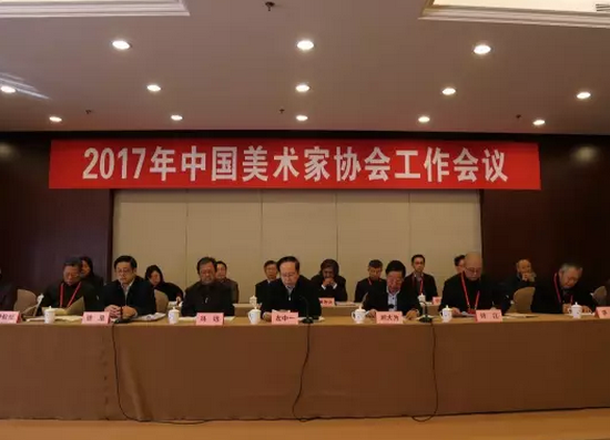 2017年我们面临的工作既任务繁重,又使命光荣。让我们更加紧密地团结在以习近平同志为核心的党中央周围,进一步深入贯彻落实习近平总书记在文艺工作座谈会和中国文联十大、中国作协九大开幕式上的重要讲话精神,不忘初心、继续前进,勇于担当、锐意进取,带领全国美术家和美术工作者,力争以一批具有史诗品格、彰显中国精神的精品力作和导向明确、质量上乘的主题性创作展览活动,努力铸就中华民族伟大复兴时代的美术高峰!