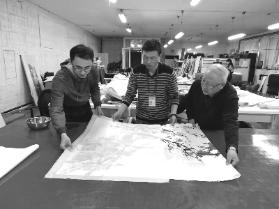 老中青三代工作人员在书画保护文化部重点实验室开展古书画修复工作