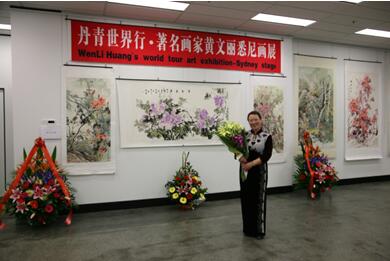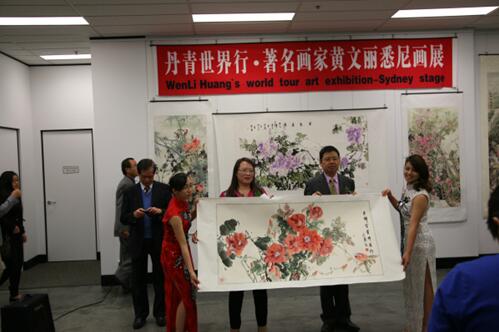 2014年5月24日上午,“丹青世界行—著名画家黄文丽悉尼中国画展”开幕式在悉尼Chatswood中华文化中心一楼展厅隆重举行。这次画展是由悉尼地区华人商会,澳洲中国书画艺术学院,澳洲天和电视台,辽宁东方书画院主办,并由澳洲香港商会协办的。近百名悉尼政要、侨领、华商和艺术家参加了开幕式。