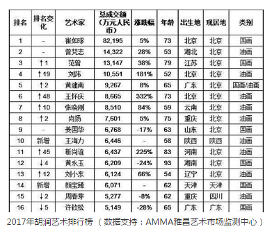 2008年,第一份《胡润当代艺术榜》发布,翌年,改名《胡润艺术榜》并延续至今。过去十年,即便《胡润艺术榜》越发受人关注,但其始终未改变给人“片面”的形象。2017年最新榜单近日发布,毫无意外地再次成为艺术圈争议话题,崔如琢连续三年排行第一。