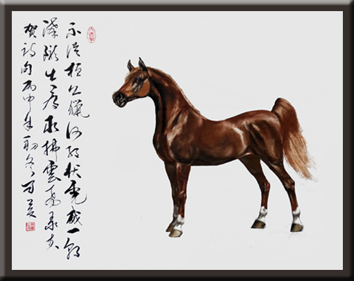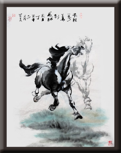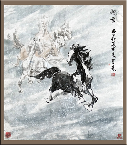 因热爱而投入,因投入而愉悦,这让吴先生的创作情绪总能处于饱满状态,其作品更充满一种超越技法的强烈的“感受性”,诚然佳作之创离不开“气韵”和“用笔”为基本,可谓气韵为上,用笔为妙,让观者能看到流畅爽劲,骨力挺拔的线条勾勒,不苟且,不犹豫,且笔笔到位,画面干净,笔法的娴熟承载着生动气韵的传达。他的作品虽用笔纵放淋漓,但造型结构十分严谨,准确充分发挥了中国传统写意画的简洁与凝练,把马的形体表现得十分强健而丰腴,纵横驰骋,气势磅礴。