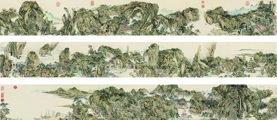 钱维城在一生的创作实践中,还注意广学博览,兼收并蓄。他临仿“元四家”(黄公望、吴镇、倪瓒、王蒙),领会他们萧疏、空灵的画风;追摹“清初四王”,体会他们的构图和笔墨着色,极大地提高了自己的艺术水准,创作出大批佳作。