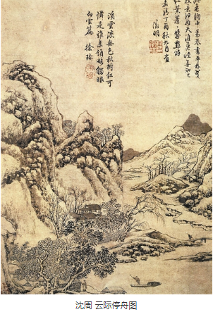 沈周一生家居读书,不应科举,以吟诗写字画画自娱。他学识渊博,富于收藏。在当时,大多数人喜爱“浙派”的绘画。因此,沈周除了学元画细柔虚松的笔墨外,也学习粗壮硬实的“浙派”绘画,形成一种处于宋、元之间的特殊风格。他独到的绘画风格最突出在三个方面:一是粗笔;二是细笔,人称“粗沈”、“细沈”;三是青绿山水。同时,他继承了徐熙“落墨花”的传统,创造出素雅的写意花鸟画。