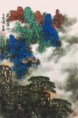 众所周知,文艺复兴以来的西洋绘画强调展现对象的“自然”或本真一面,侧重写实,而中国绘画自其走向成熟以后,更专注对天与人、实与虚、动与静、画里与画外等重要关系之间混沌或模糊状态的描绘,重在写意。数百年来伴随西风东渐,中国绘画的理念、风格、手法、传播等均在发生不可回避的变革,吸纳包容、兼收并蓄成为这个时候乃至今后一个很长时期内的创作指向。但如何面对强劲的西洋绘画风潮的冲击,在取长补短和扬长避短中坚守民族绘画之应有的文化立场以及价值情怀,不仅关乎艺术家本身的荣辱得失,更是关系到源远流长、自成一体的中华绘画的血脉能否得以存续、优秀传统能否得以弘扬,因此乃是每一个严肃的中国艺术家们须臾不可等闲视之的重大现实问题。以此纵观黄之“逍遥黄山”系列画作,不可否认的是,作者在这方面是具有相当艺术自觉的。