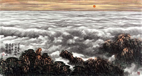 古有道教信徒“诗仙”李白来到他神往已久的黄山,慷慨高歌,吟咏“黄山四千仞,三十二莲峰;丹崖夹石柱,菡萏金芙蓉”的千古名句,逍遥之态尽显;今有现代国画正脉嫡传黄之先生积数十年泼墨写意之功力,潜心砥砺,写就“游云本是天上水,相伴黄山亿万年;云自逍遥山自屹,天地之间尽缠绵”的美妙诗句,逍遥之境迭出。