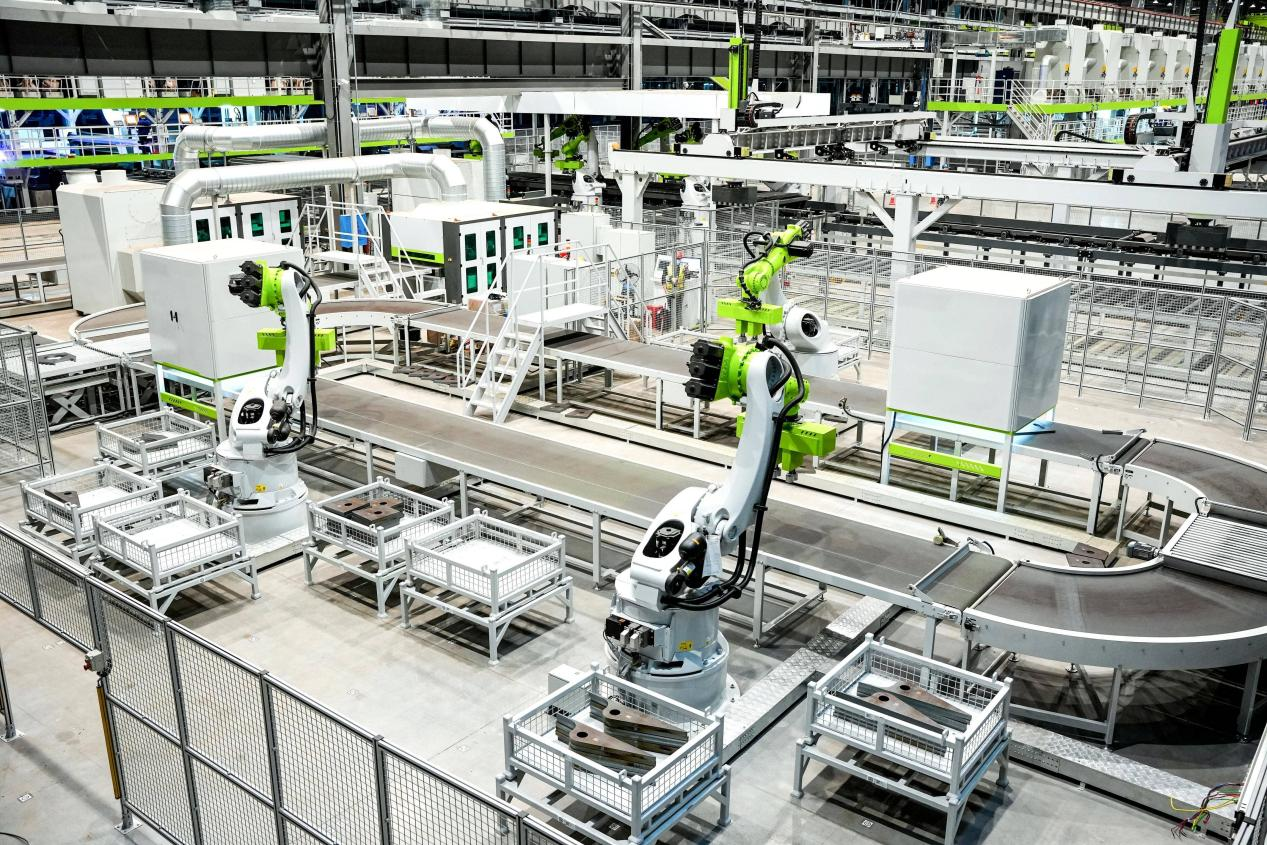 图为中联重科挖掘机共享制造智能工厂产线一景