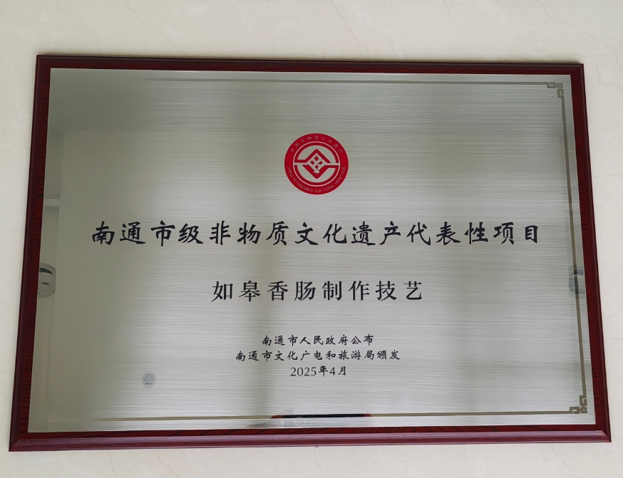 2025年4月,南通市政府正式公布第六批市级非物质文化遗产代表性项目名录,由田阿姨食品科技南通有限公司申报的“如皋香肠制作技艺”成功入选。这一认定不仅标志着如皋香肠深厚的历史文化底蕴得到官方保护与传承,也为这项百年传统技艺在当代的创新发展注入了新的活力。