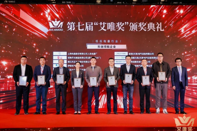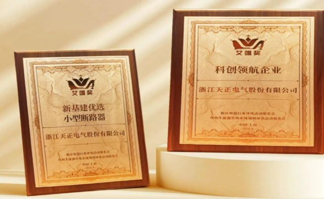 4月10日,2026新能源电器联盟年会暨第七届“艾唯奖”颁奖典礼在上海举办,天正电气(605066.SH)凭借强劲的科创实力及品牌影响力脱颖而出,荣获“科创领航企业”“新基建优选小型断路器”两项大奖。