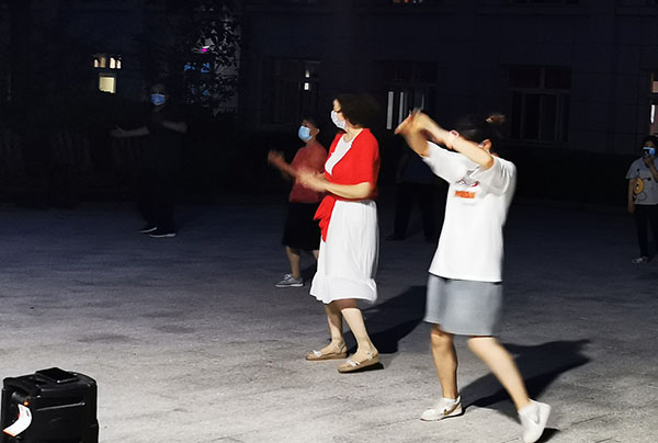 拉扎特说:当晚和患者一起跳舞中途,我发现一个熟悉的身影一直坐在小广场边上的座椅上,然后我停下舞步走到她身边,问她看我们跳舞心动吗?并跟她聊了一会儿。因为一周前她听到小广场播放出来的音乐心里就很烦躁, 所以在做了早操后我放轻音乐不过五分钟她就过来关掉了,另外她对病房外不时起降的飞机(医院隔壁就是机场的跑道)轰鸣声也非常不适应。我能够理解她的心情。这位从贵州来的小妹刚来时心情非常糟糕,甚至有轻生的念头。人的情绪出现变化,其实对身体的器官也会造成伤害,所有情绪变化往往伴随着一系列生理变化。在她入院的第一周我从精神上多加陪伴她,慢慢的让她接纳我这个大姐姐,接纳周围的声音,接纳飞机的轰鸣,同时 让她接纳别人的笑声,接纳音响播放出来的动听的音乐,接纳了和大家一起娱乐一起跳舞... 渐渐地这一切她都接纳了,更加让我感动的事情就是接纳了她本人当下的病情,已悄悄按下了轻生的停止键。所以当我发现她一个人主动走出病房来看大家跳舞,我就立刻到她身边 赞美她当下的巨大变化,让她通过我的描述看见自己非常好的变化...她也开心地说 :“ 老师,谢谢你!我真的现在慢慢地像你说的一样可以用感觉听音乐以后,我就不讨厌这些音乐了,也不讨厌飞机的轰鸣声音,更加不讨厌自己了。我看到你的包包放在这里,我就一边给你看包一边在这里看你们跳舞... 哈哈... 她笑,我笑,她的丈夫也跟着一起笑,我们共同祝贺她一天比一天开朗,祝贺她变得积极向上。