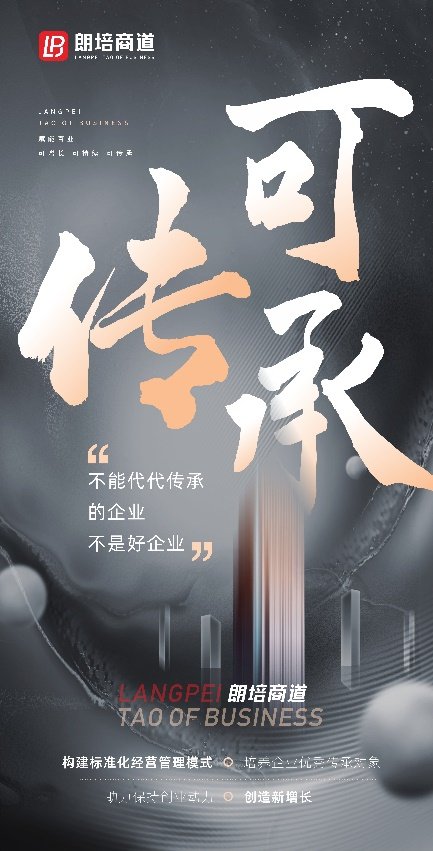 在经过了数百个日夜的反思与总结后,朗培商道将“可持续、可增长、可传承”的经营理念融合,向在迷茫中挣扎、在困境中踟蹰、在发展与抉择中不知所措的企业深度赋能,实现品牌、管理、运营思维的全面升级,最终推动产业经济健康发展。