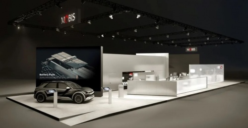 现代摩比斯的展馆位于Messe B2馆内,展区面积358平方米,功能划分为展示现代摩比斯电动化和自动驾驶技术的公共区以及供顾客商谈的私密区。