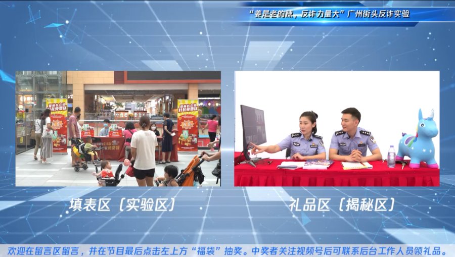 为提升广大市民的反诈意识,9月28日,由腾讯“守护者计划”联合广州市反诈中心发起一场“免费送”街头反诈实验直播。工作人员化身“商超店员”,以“免费注册会员送好礼”为噱头引诱市民填写个人信息,由此观察广大市民的反诈意识。活动特邀广州市反诈中心民警与市民“面对面”进行反诈科普,动员全社会力量向广大市民宣导反诈骗知识,此次直播吸引众多网友观看和留言。
